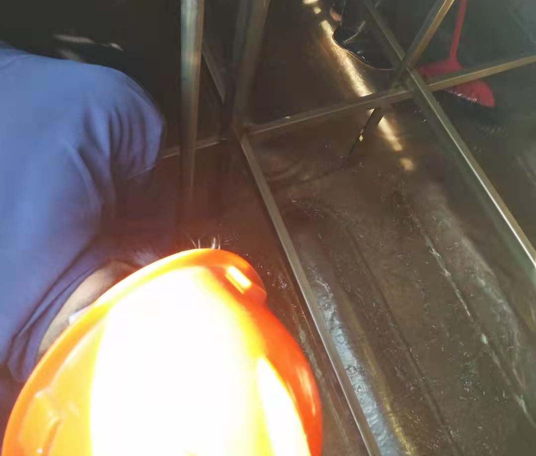 在清洗水箱的過程中,消毒人員須帶護眼鏡、口罩,如在水箱內感到